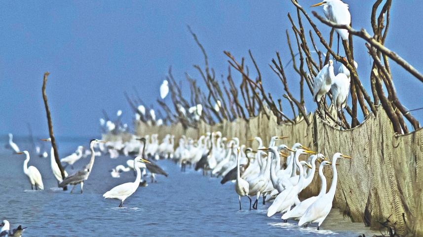 It is true—we have lost a decade and are still yet to combine biodiversity monitoring with climate change, but let us now look forward by looking into the past. One of the best examples of long-term monitoring of biodiversity in Bangladesh is the migratory water bird census. Every winter, the Bangladesh Bird Club (BBC), a group of bird-enthusiasts, coordinates this survey in haors, riverine chars, and the coastal areas of Bangladesh. Over the last three decades, this census has been giving us a yearly picture of migratory water birds, their numbers and diversity. We can now use this large database and link it with national and regional climate data from the past 30 years to explain changes in the migratory birds' visits to Bangladesh.