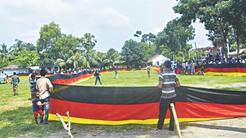 Grateful Magura man Amjad Hossain (69) sponsored a three-km-long German flag during 2014 World Cup. German Chargé d'affaires visited Magura and bestowed Hossain with lifetime Germany fan club membership, a football and of course a German flag, but many times smaller. A humble farmer, Hossain sold a 50-decimal land to raise Tk 1.5 lakh (almost USD 2,000) for three tailors and the many metres of black, red and yellow fabrics. Hossain was in fact repaying a debt. In 1987, a German medicine cured him of a dreadful illness. Four years on, the thankful farmer sold yet another patch of land. This year he made a 5.5km-long flag. Hector, Khedira and Ozil may not be in the team in four years, but Hossain plans a 22km-long flag for the 2022 World Cup. I believe he does not have enough land to sew up to Berlin.
