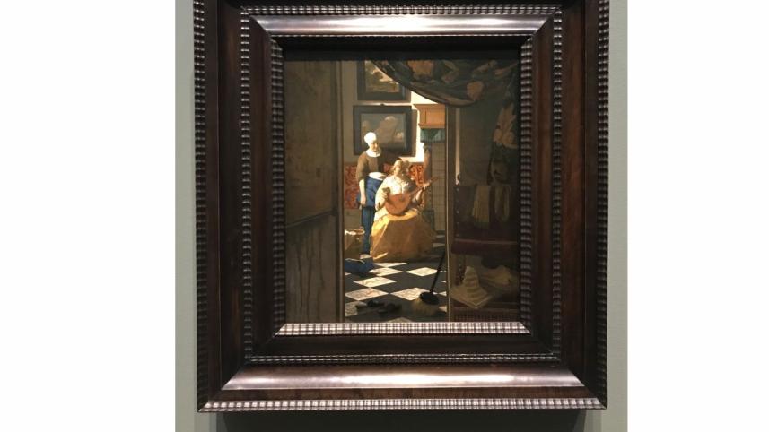 My interest was actually less in the painting itself than in its fascinating history, embroiled in a daring art theft. Sometime around September 1971, Vermeer's The Love Letter was on loan from the Rijksmuseum to the Fine Arts Palace in Brussels as a part of the Rembrandt and His Age exhibition, which included 136 paintings by different Dutch masters.