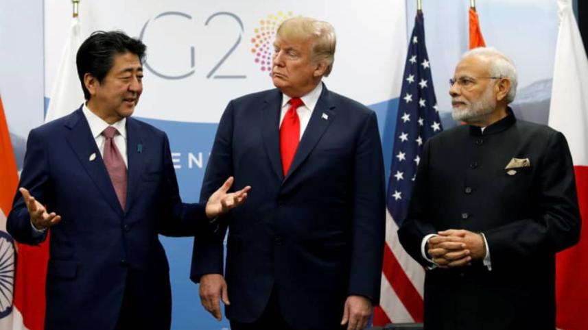 The economic relations between India and Japan and India and the US have strengthened remarkably over the last two decades. The US has emerged as India's biggest trade partner with trade in goods and services touching USD 127 billion, thus becoming the most important source of investment. Japan has invested heavily in India's industrial and rail corridors, bullet-train project and road connectivity projects in the north eastern part of India which will act as a big boost to India's outreach to South East Asia. During Modi's visit to Japan in October this year, India and Japan agreed to explore collaborative projects in Bangladesh, Myanmar, Sri Lanka and African countries in competition with China's Belt and Road Initiative. As India aims at a USD 6 trillion economy in the next decade or so, an environment free from hostilities is needed. The US too stands to benefit from it by joining in the enhancing of infrastructure capability of developing countries.