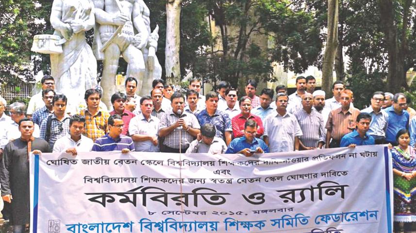 After nine months of patient negotiations, discussions and representations, and after taking due care not to disrupt academic activities on campus, teachers of all public universities have finally gone on strike against recent moves to downgrade the professional prestige of senior professors through the new pay scale. Public sector school and college teachers, along with professionals, have also come out on the streets, but the most attention is focused on the status and ultimate employment ceiling of senior professors. Because their demand is just, and because of their collective clout, the government will have to agree to the demands of the university teachers sooner than later. But will restoring the order of precedence alone lead to a qualitative improvement of higher education?