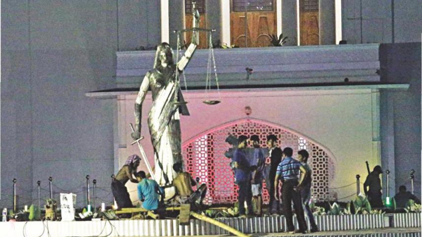 The removal of the statue is a victory for the religious right. Stoking extremist views Hefazat, Awami Ulema League, Islamic Andolon and their cohorts claimed that Dhaka the 'city of mosques' has now been turned into a 'city of idols'. For them the statue of Themis (holding a sword and scales that is almost universally acknowledged as dispensation of fair justice) amounts to idolatry."Statues or any kind of idols are completely banned in Islam", they reckon."There is no place for a statue in our religion. So "Muslims can't allow a statue in the Supreme Court premises".