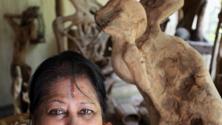 "I work with and sculpt the bark of trees as they signify to me the abandoned, like I was after 1971—abandoned, ridiculed, humiliated and treated with contempt". (Ferdousi Priyabhashini, Women and War).