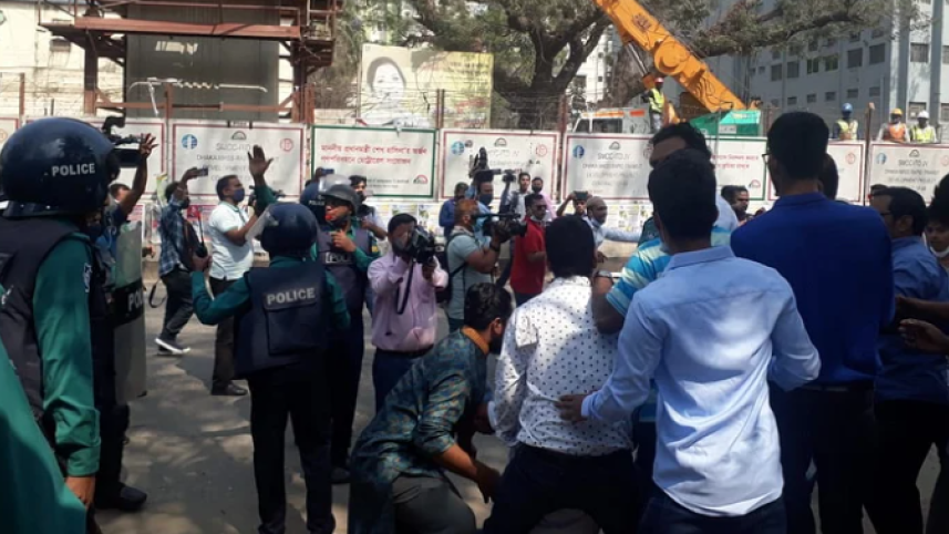 Aman Ullah, member secretary of JCD DU committee, said police charged baton on them and also fired tear shells when they gathered in front of the Press Club for forming a human chain around 11:00am.