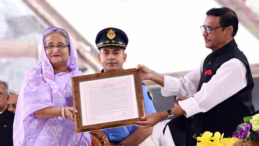 AL General Secretary Obaidul Quader read out the felicitation message at the programme and handed it over to the PM.