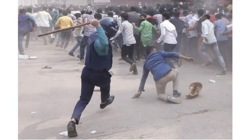 The rally was being held peacefully for nearly two hours, blocking the road in front of Press Club. The clash happened when law enforcers requested them to vacate the road after 12:00pm to facilitate traffic movement.