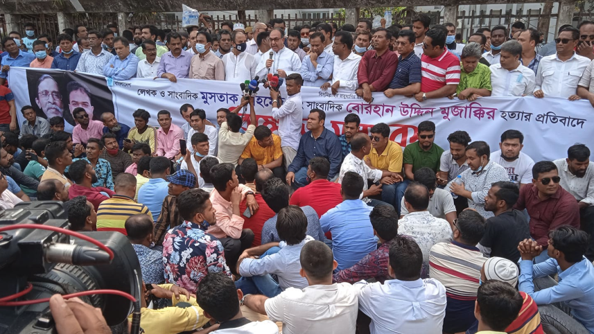 Jatiya Swechchhasebak Dal today held a rally protesting the death of writer Mushtaq Ahmed in jail custody, and the killing of journalist Borhan Uddin Mujakkir.
