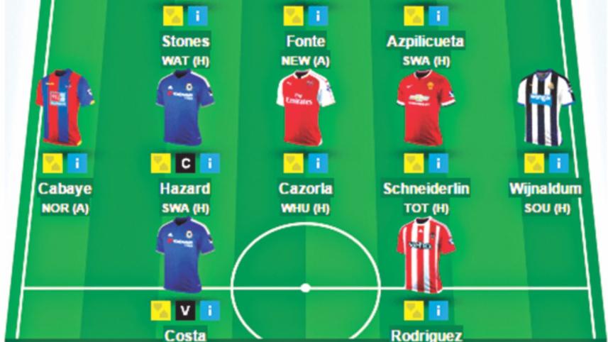 For defenders, always pick wide-backs. There is a higher chance of them to assist and take your fullbacks from top-table teams like Kolarov from Manchester City. But when it comes to your forwards and midfielders go for the best players from the weaker sides. Wilson from Bournemouth is a fine example of this. They contribute a lot for their teams and win you a lot of points and you get them in cheap prices. That way you save a lot of money to fund purchases like Aguero and Silva.