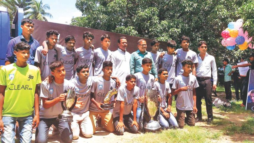 Jogen Lakra is one of them. Willowy, dark and tall, Jogen – like a few others in his football team – belong to Orao, an indigenous community living in the region. Jogen never made it to his district town Rajshahi, let alone the country's capital Dhaka, until recently. The first time he visited Dhaka was a few days before the final of Clear Men Under-17 Football Tournament, an event participated by as many as 272 schools from around the country. When the tournament final was aired live on the television, Jogen's father joined the crowd at the school where all the eyes were glued on the screen. The golden moment for Sonadighi High School arrived when Jogen placed the perfect free-kick that his fellow Biplob Tirki headed in to secure the decisive goal for the team, to win the tournament. Thus began the journey of little maestros.