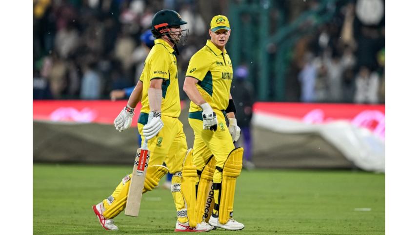 Australia, chasing 274 to win, were 109-1 after 12.5 overs with Travis Head and Steve Smith unbeaten on 59 off 40 and 19 off 22 respectively before rain halted play and did not allow it to resume.