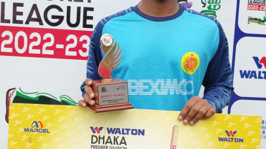 Left-arm spinner Tanvir Islam bagged three wickets for which he was adjudged the player of the match, while Mohammad Saifuddin and Rakibul Hasan scalped two wickets each for Abahani.
