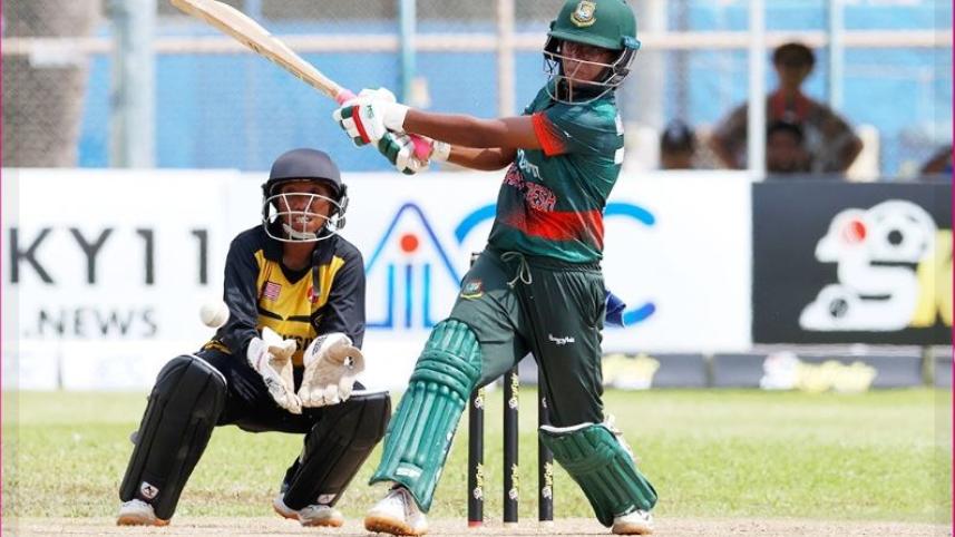 Leg-spinner Rabeya picked up two wickets conceding just seven runs from her three overs, while Marufa Akter, Sanjida Akter, Nahida Akter, and Sultana Khatun took a wicket each for Bangladesh.