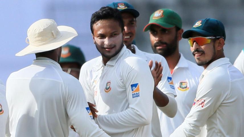 Shakib Al Hasan has grabbed another fifer in this Test match. That's ten wickets for him. Brilliant performance from the all-rounder.