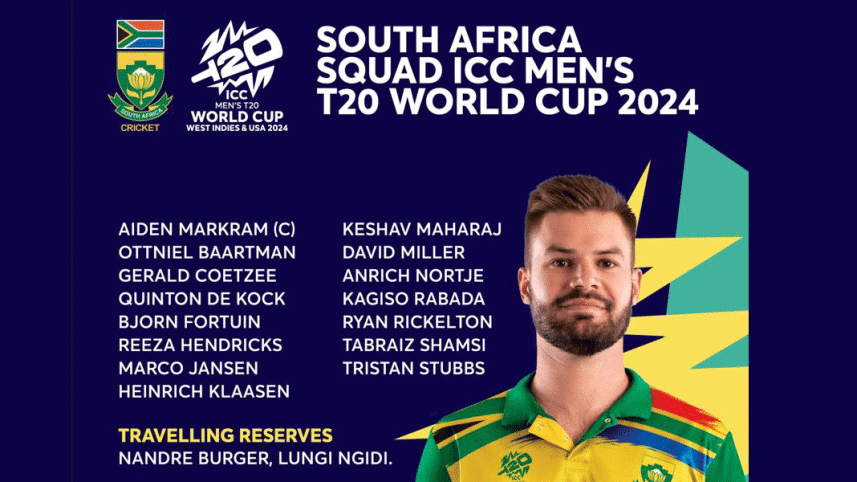 The 15-man squad for the tournament in the United States and the West Indies from June 1-29 contains nine whites, just one black African –- fast bowler Kagiso Rabada –- and five mixed race or Asian origin players.