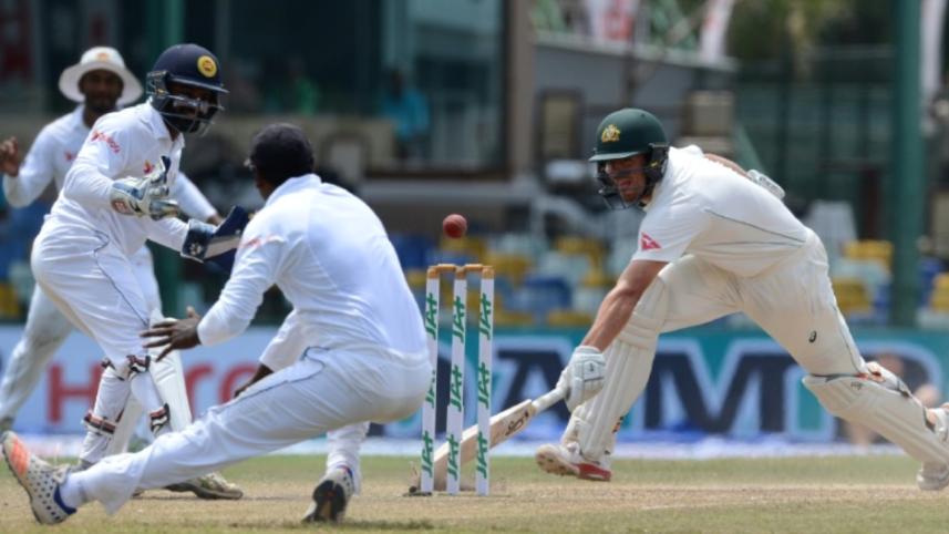 off-spinner Dilruwan Perera struck just before lunch to send Marsh, who scored a century in the century in the first innings in Colombo, back to the pavilion on 23.