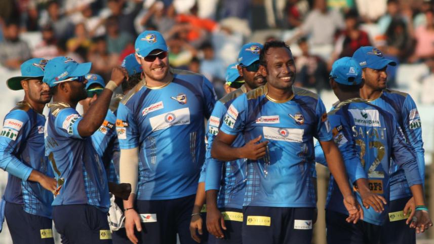 Earlier, Chittagong Vikings’ foreign recruits Mohammad Nabi and Tymal Mills took three wickets each to keep table toppers Dhaka Dynamites down to 148 for 9 after 20 overs.