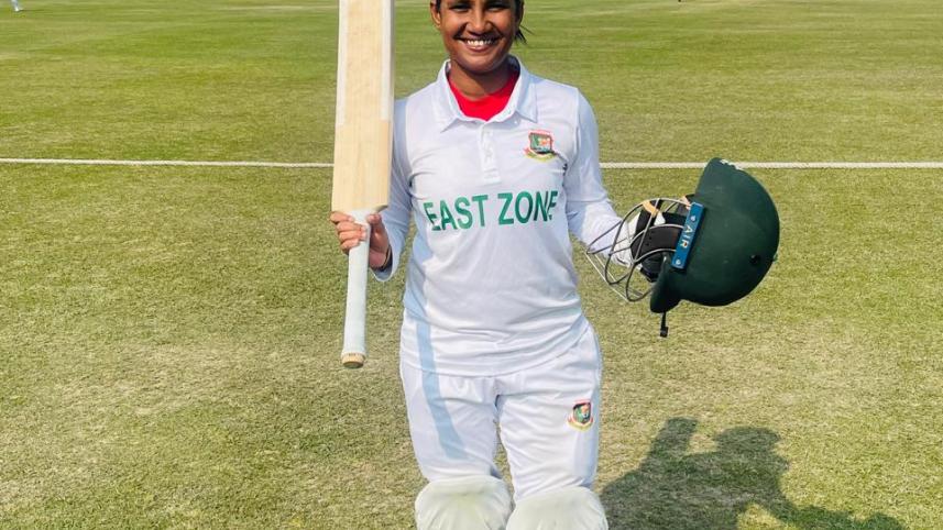 Dilara scored 102 off 131 balls with 11 fours and two sixes, while Jannatul Ferdues Tithi and Sharmin Akhter Supta contributed with 65 and 62 runs, respectively, as East Zone made 316-8 at stumps after opting to bat first.