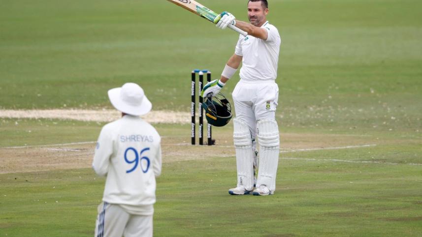 Elgar, who took over the captaincy after Temba Bavuma pulled his hamstring fielding on Tuesday, played some unusually flamboyant front foot strokes in a chanceless innings against a fearsome attack on a track set up for the seamers.