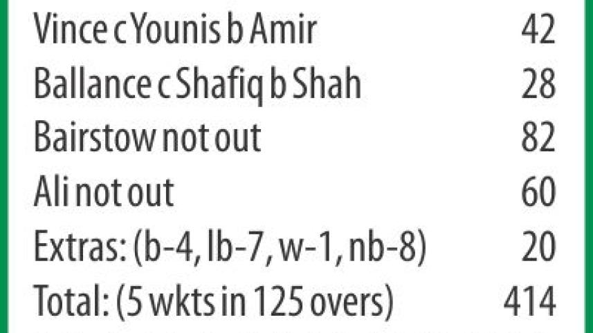 Bairstow received excellent support from Ali, who played several fine shots of his own against a tiring Pakistan attack featuring just four frontline bowlers.