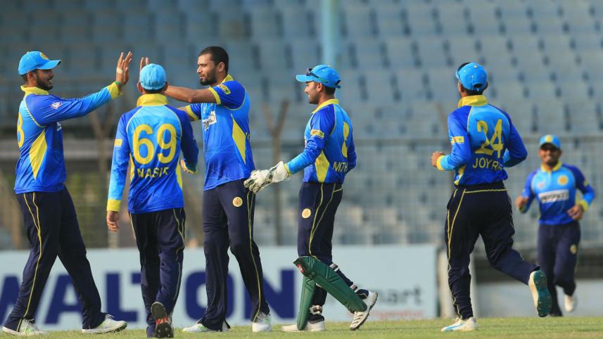 Earlier, holders Gazi Group rode on a 59-run seventh wicket stand between Asif Hossain (35) and Nadeef Chowdhury (28) to recover from a hopeless 6 for 50 to a modest total.