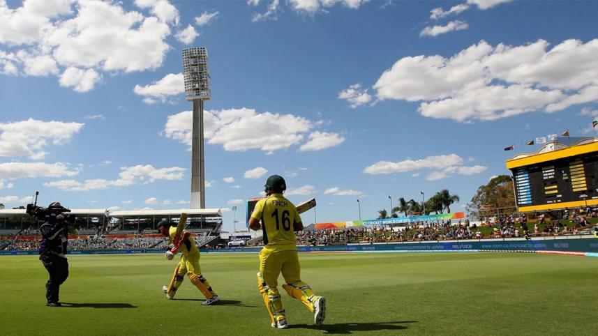 Australian openers come down to bat against Afghanistan in the 26th match of the ICC cricket World Cup 2015 at WACA, Perth. File Photo: ICC