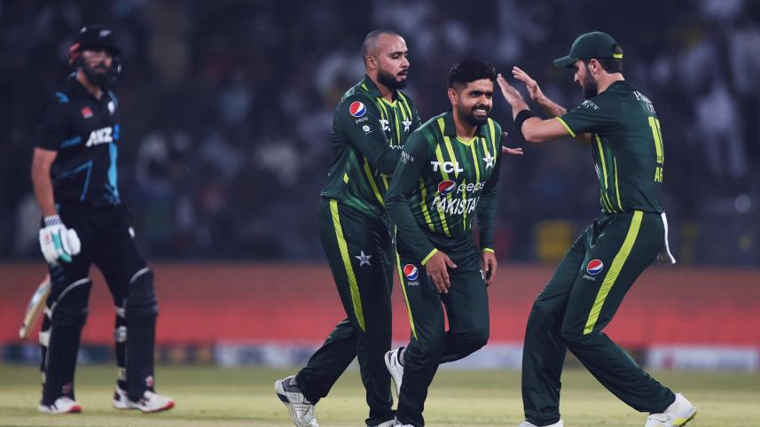 Pakistan lost both their openers -- Mohammad Rizwan leg-before for eight and then Azam bowled -- to pacer Adam Milne by the fifth over for just 30.