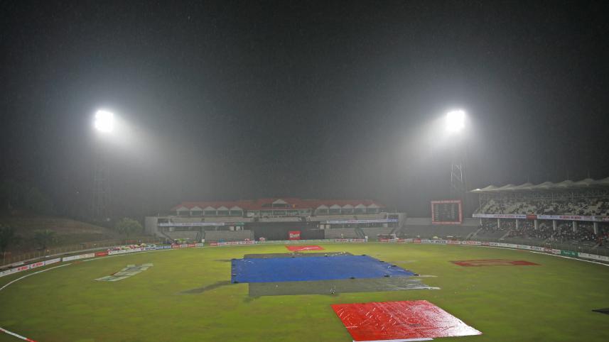 The cut-off time was determined to be at 10:57 pm, with play scheduled to resume by 9:33 pm but the match officials, considering the state of the field as a result of the incessant rain, decided to call proceedings off ahead of 9:33 pm.