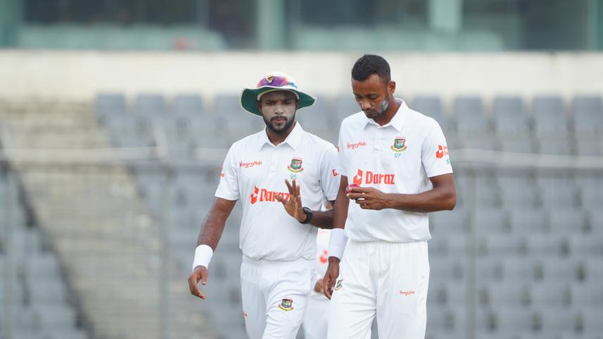 Zazai was nicked off by Shoriful, who opted for a change in angle to dismiss the right-handed batter. Zazai, who scored six, got a thick edge to Mehedi Hasan Miraz at gully while trying to reach out for a wide one.