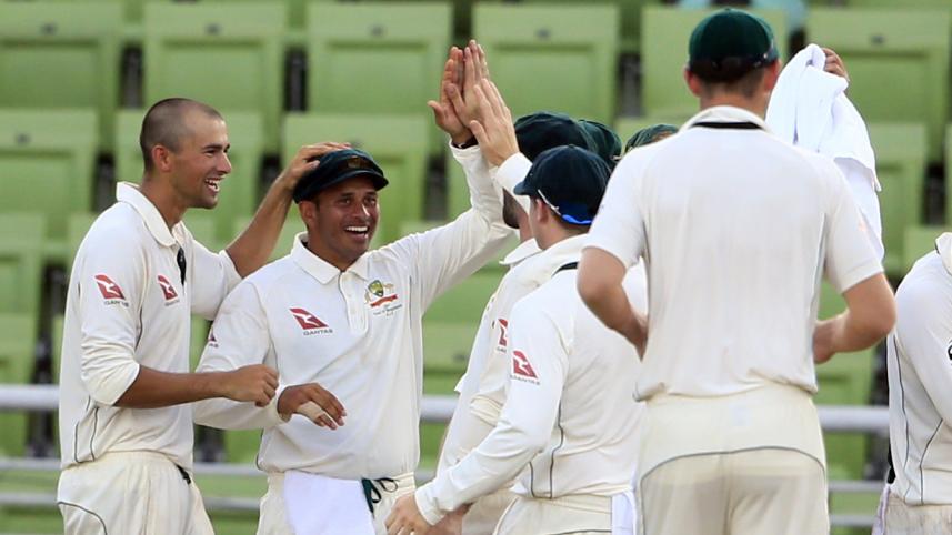 Left-arm spinner Ashton Agar was one of the few who could sport a smile at the end of the day, as his unbeaten 41 was instrumental in reducing Bangladesh’s advantage.