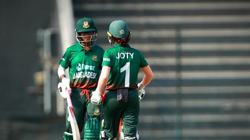 Bangladesh piled their total with two unbeaten fifties from opener and player-of-the-match Murshida Khatun (77) and skipper Joty (56), batting at one down.