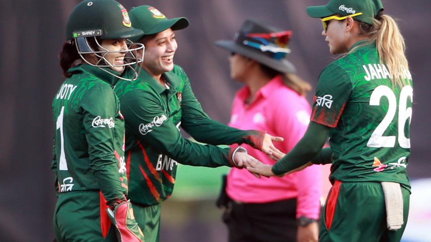 Sultana Khatun and Nahida Akter took three wickets each while Marufa claimed two wickets.