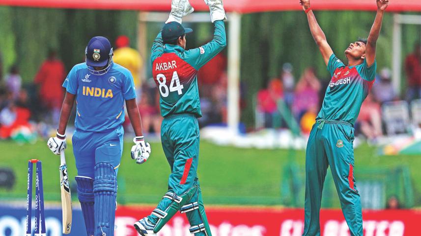 The pace pair of Shoriful Islam and Tanzim Hasan Sakib started the ICC Under-19 World Cup final in Potchefstroom with fire that gave the team early momentum. Pacer Avishek Das reaped the rewards of their early fire and then the spinners held their nerves when the Indian batsmen weathered the early storm. Avishek Das (three for 40) and Tanzim Hasan Sakib (two for 28) picked up crucial wickets for Bangladesh.