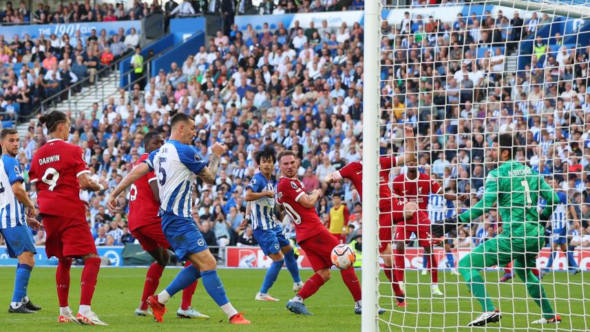 Brighton forced an equaliser in the 78th minute when Andy Robertson decided against trying to clear Solli March's free kick, allowing defender Dunk to volley home.
