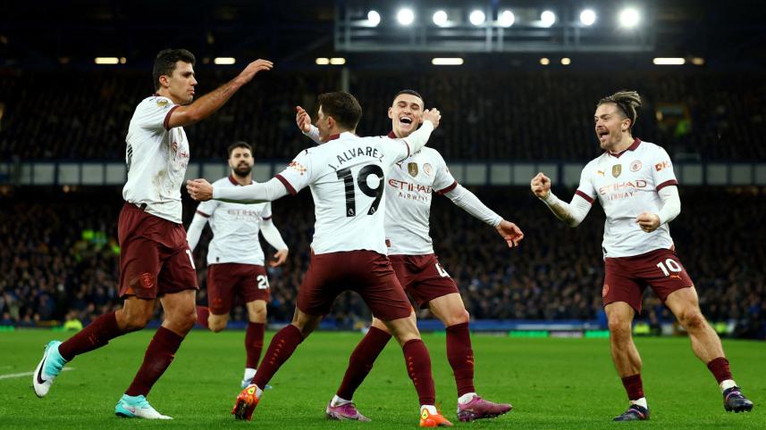 Pep Guardiola's men, chasing an unprecedented fourth consecutive English top-flight title, were in trouble when trailing 1-0 at Goodison Park, courtesy of a first-half strike from former City player Jack Harrison.