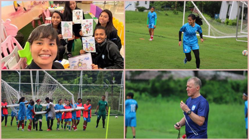 After getting the job brilliantly done on Wednesday, before their third and final group match in the AFC Women's Asian Cup Qualifiers, some of the golden girls of Bangladesh traded their boots for crayons, unwinding in a kids' play zone with colouring books in hand.