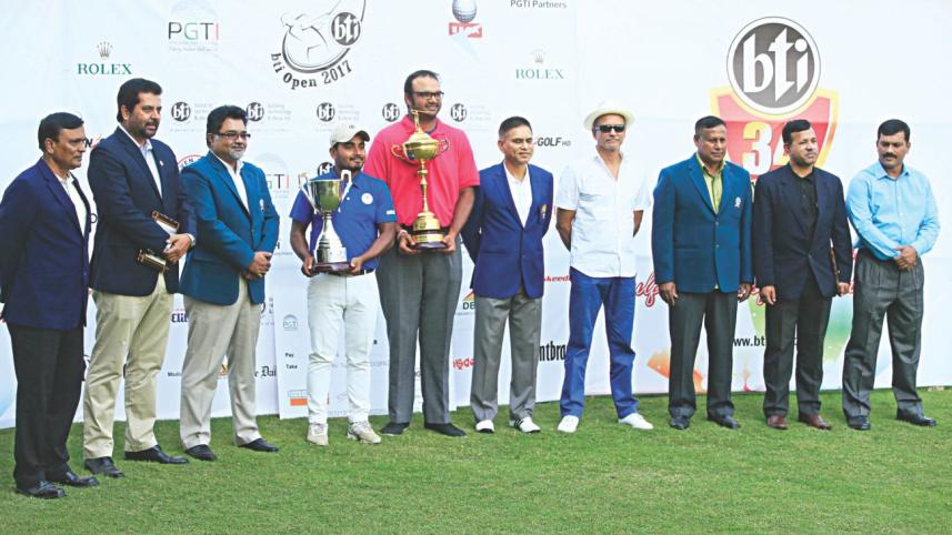 Indian trio of Aman Raj (69), Harendra Gupta (70) and Khalin Joshi (71) shared second position at eight-under-par (280) while Mohammad Nazim of Bangladesh finished in ninth position with four-under-par (284) to become the only non-Indian player to finish among the top ten in this event, which has been sponsored by real estate company BTI Holdings Ltd and co-sanctioned by the Professional Golf Tour of India and Bangladesh Professional Golfers' Association.