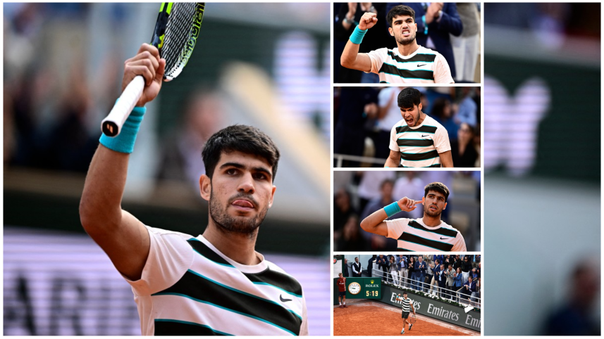 Alcaraz lost serve at 5-3 but promptly broke to love to force a fourth set, lapping up the roars of the Court Philippe Chatrier crowd.