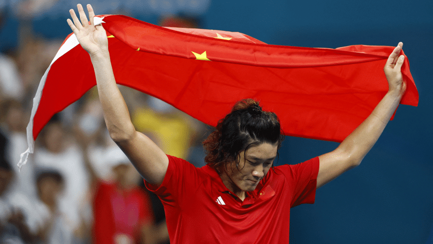 Chinese tennis trailblazer Zhang Zhizhen claimed the nation's first men's singles gold medal at the Asian Games in nearly 30 years on Saturday, riding a wave of crowd support to beat Japan's Yosuke Watanuki 6-4 7-6(7) in Hangzhou.