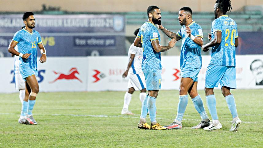 Brazilian Francisco Rodrigues gave Abahani the lead in the 26th minute, converting a penalty after Mohammad Sohel brought down Abahani's Jewel Rana inside the box.