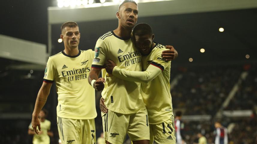 Pierre-Emerick Aubameyang started his season with a hat-trick as Arsenal shook off their Premier League troubles and hit second tier West Bromwich Albion for six to reach the third round of the League Cup on Wednesday.
