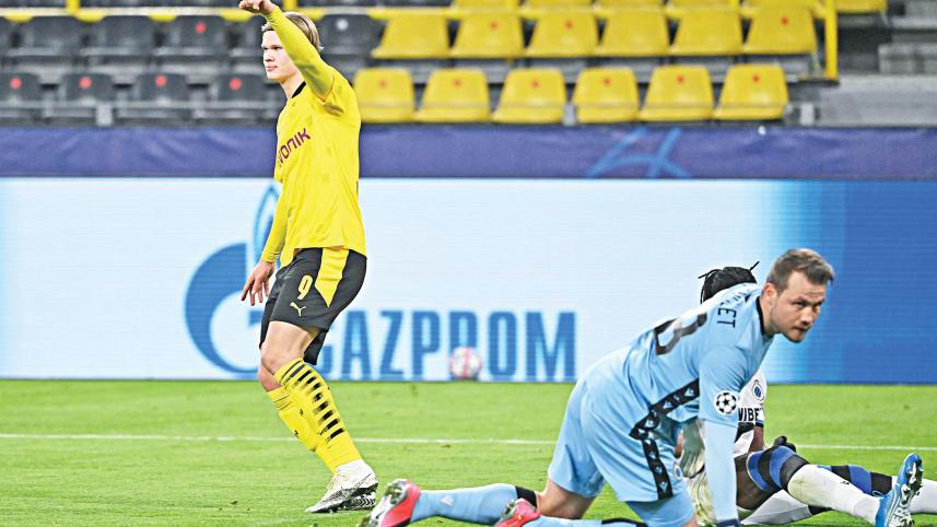Borussia Dortmund need just one more point to qualify from Group F following a 3-0 win over Club Brugge as the prolific Haaland netted twice either side of a Jadon Sancho free-kick in Germany.