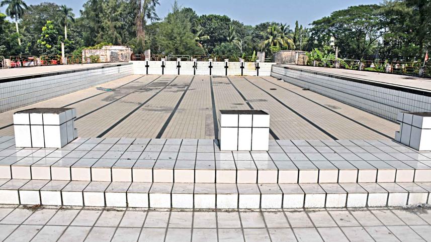 One such venue is the lone swimming pool in Rajbari district town. The swimming pool that was constructed on three acres of land at a cost of Tk 3.37 crores in 2003, has remained unused for the past one-and-a-half year due to lack of fund.