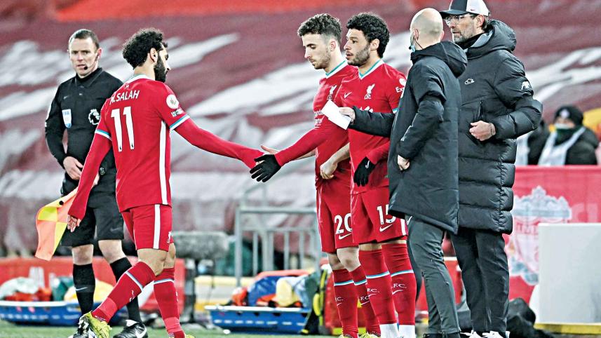 A sixth Premier League defeat in their last nine games left the champions in seventh, facing the prospect of finishing outside the top four. The extent of Liverpool's frustration was there for all to see when top scorer Mohamed Salah was substituted just past the hour -- the Egyptian clearly baffled by the decision as he took his place on the bench shaking his head.