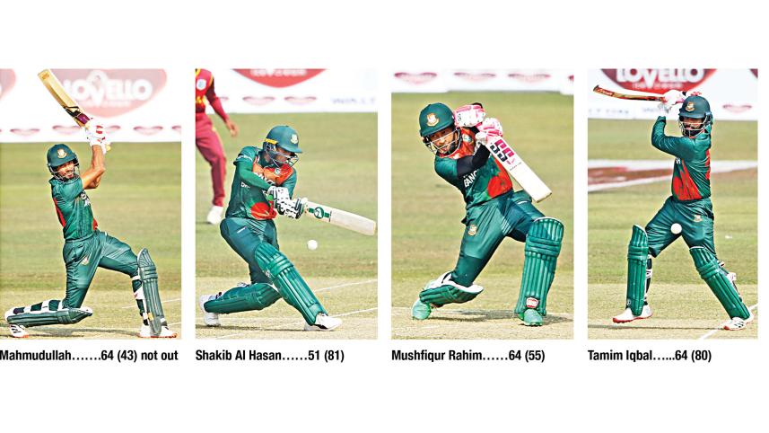 The four big guns in skipper Tamim, Shakib, Mushfiqur Rahim and Mahmudullah Riyad all scored fifties to post their highest ODI total of 297 for six at the ZACS.
