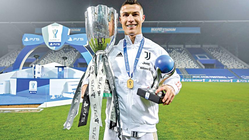 Juventus superstar Cristiano Ronaldo poses with Italian Super Cup and man-of-the-match trophies on Wednesday. Breaking records has become routine for Ronaldo throughout his extraordinary career. He was hailed as the most prolific professional goalscorer in history after notching his 760th senior goal to help Andrea Pirlo win his first trophy as a coach five months after taking over at his former club as Juventus beat Napoli 2-0 in the final. The title of greatest goalscorer is much contested, and global governing body FIFA does not keep an official record, but several media outlets reported that Ronaldo’s strike had taken him past Austro-Czech Josef Bican to the top of the list. Bican, as well as Brazilian strikers Pele and Romario, scored in excess of 1,000 goals during their careers but those statistics include strikes in amateur, unofficial and friendly matches. Ronaldo’s career tally includes goals for four top-flight clubs and Portugal with his closest active rival being Argentine Lionel Messi, who last month scored a single club record 644th goal for Barcelona. The 35-year-old Ronaldo, who is the leading goalscorer for his country with 102 goals, has scored 85 goals for Juventus. PHOTO: twitter