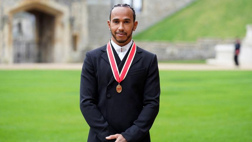 The 36-year-old Briton, the sport's only Black driver, was made a Knight Bachelor by Britain's Price Charles during an investiture ceremony at Windsor Castle in England.