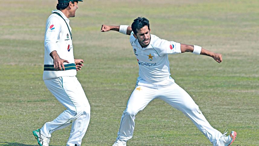 Hasan's new-ball partner Shaheen Shah Afridi finished with 4-51, while spinner Yasir Shah took the last wicket to spark jubilation among the Pakistan players. Opener Aiden Markram scored a fighting 108 and Temba Bavuma 61. Hasan ripped through the tourists' batting order, which lost seven wickets for just 33 runs with the second new ball.