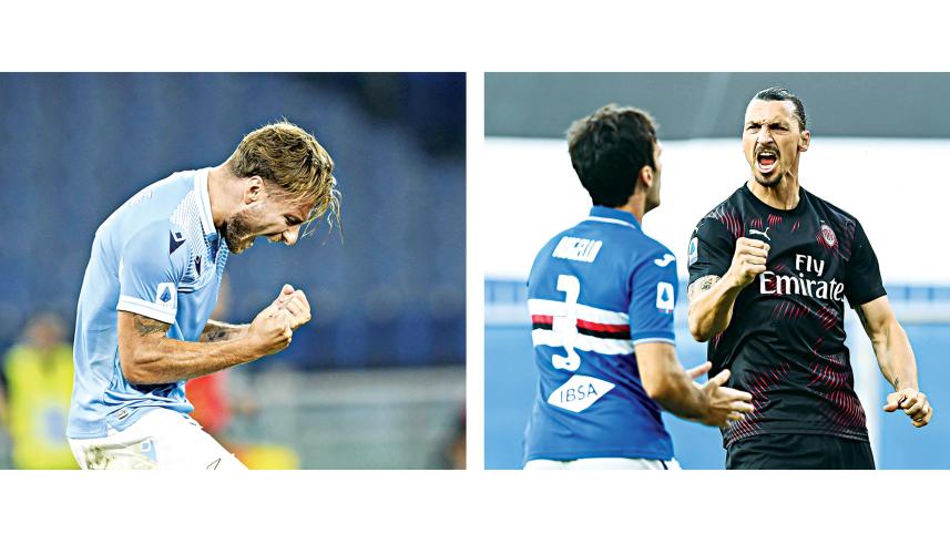 Ciro Immobile and Zlatan Ibrahimovic were ecstatic in celebrations during their respective Serie A games on Wednesday. Immobile boosted his chances of clinching the top scorer award as he netted his 35th goal of the season, moving four clear of Juventus forward Cristiano Ronaldo during Lazio’s 2-0 win against already-relegated Brescia and he now has a shot to go ahead of Robert Lewandowski, who had 34 goals. Meanwhile, Ibrahimovic scored twice to help AC Milan win 4-1 at Sampdoria. It was the second time in three matches that the 38-year-old has got a brace. On the other hand, Juventus, who won a record-extending ninth straight Serie A title on Sunday, fielded a much-changed team and lost 2-0 at Cagliari. Photo: TWITTER