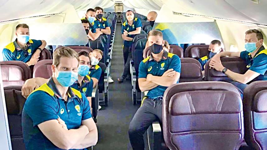 The first Australian team to leave these shores since the pandemic began, the Australians – plus coaches and support staff – boarded a charter flight direct to the East Midlands. The squad will spend a few days in a hotel attached to Derby's cricket ground before a three-hour bus ride to Southampton's Rose Bowl and its associated hotel.