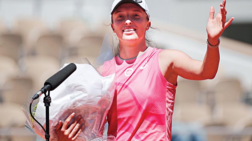 Birthday girl Iga Swiatek faced some stiff resistance in the second set before the Pole went on to beat best friend Kaja Juvan of Slovenia 6-0, 7-5 to launch her French Open title defence on Monday.